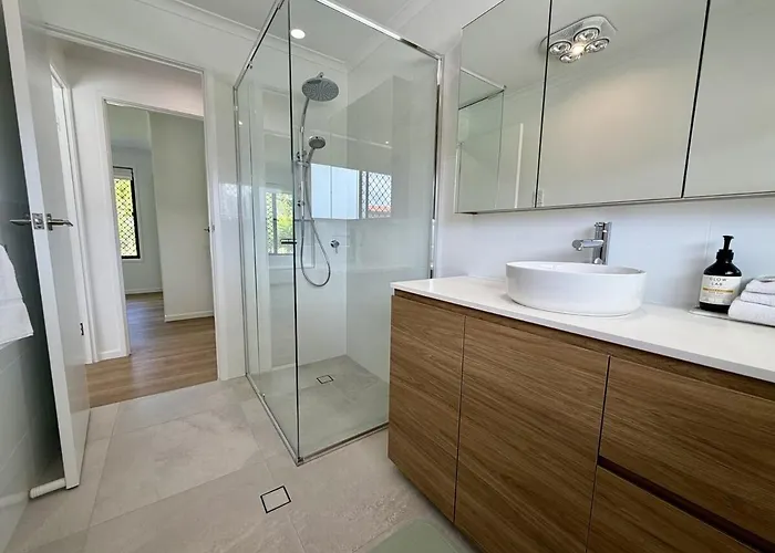 El Parque Leach está a 750 metros de esta villa, mientras el Club de Golf Pelican Waters se encuentra a unos 3 km.